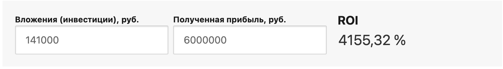 При общих вложениях в 141 тысячу рублей, ROI составил: